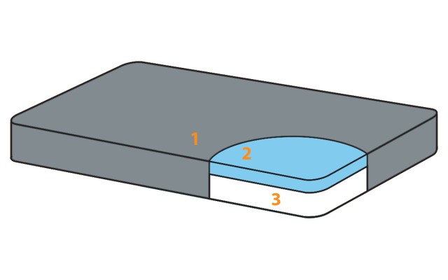 Legowiska MEMORY wykonane są z pianki z pamięcią kształtu (1/3) oraz z pianki o wysokiej gęstości (2/3).