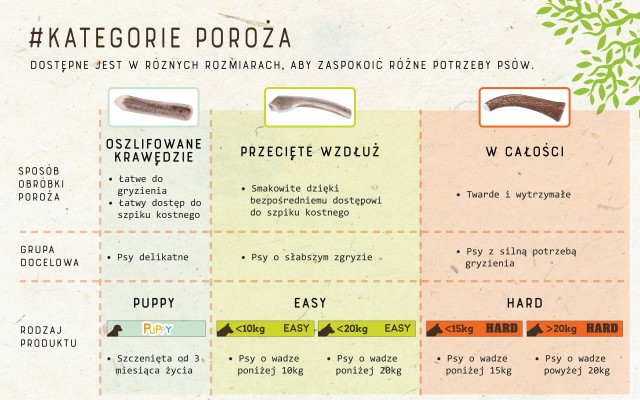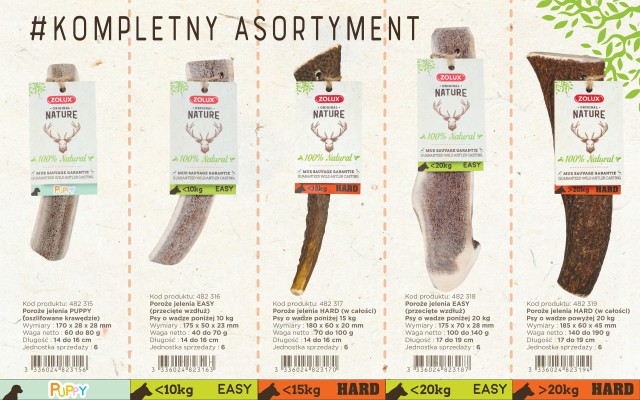 • Bezpieczeństwo zwierzęcia: wszystkie ostre krawędzie poroża zostały oszlifowane.