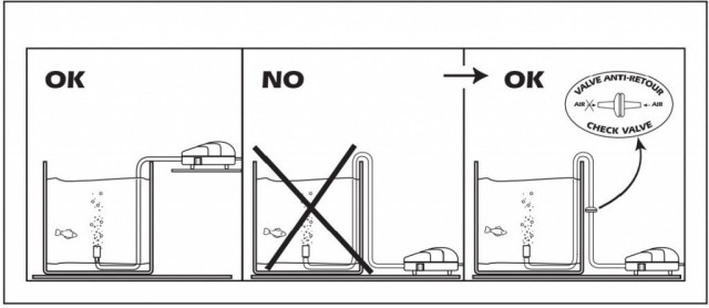 Jej instalacja jest bardzo prosta, a dodatkowe akcesoria do napowietrzania proponowane przez Zolux (rurki odpowietrzające, różne formy dyfuzorów powietrza, zawory kurkowe, separatory, rampy wielokanałowe, zawory zwrotne. Itd.) pozwalają na projektowanie i tworzenie wszelkich możliwych kombinacji (zob. poniższy schemat).